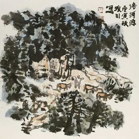 《洛河源》[35cmX35cm] 2010年 应该说山水画的基础此时已经备赅。郭熙的《林泉高致》中提出山水画“可行、可望、可游、可居”,尤以丘壑表述为重心。但山水画由两宋进入元代,逐渐进入丘壑与笔墨兼顾的时期,丘壑布局虽然体现了不同时期对山川风物的感悟与表述,但笔墨形式逻辑却在连续不断的传承中得到发展和受到重视。漫长达千年的水墨画的发展史凝固成东方民族独有的审美情结,形成了完美的体系和价值标准,但这一标准并非一成不变。明末董其昌提倡重笔墨、重表现的文人水墨画,对清初山水画发展影响很大,笔墨这种一直作为丘壑情景表述手段的技法,演进为逐渐游离于物象之上而为画家刻意追寻的别有意味的形式,在审美观的发展上这是一大变化。
